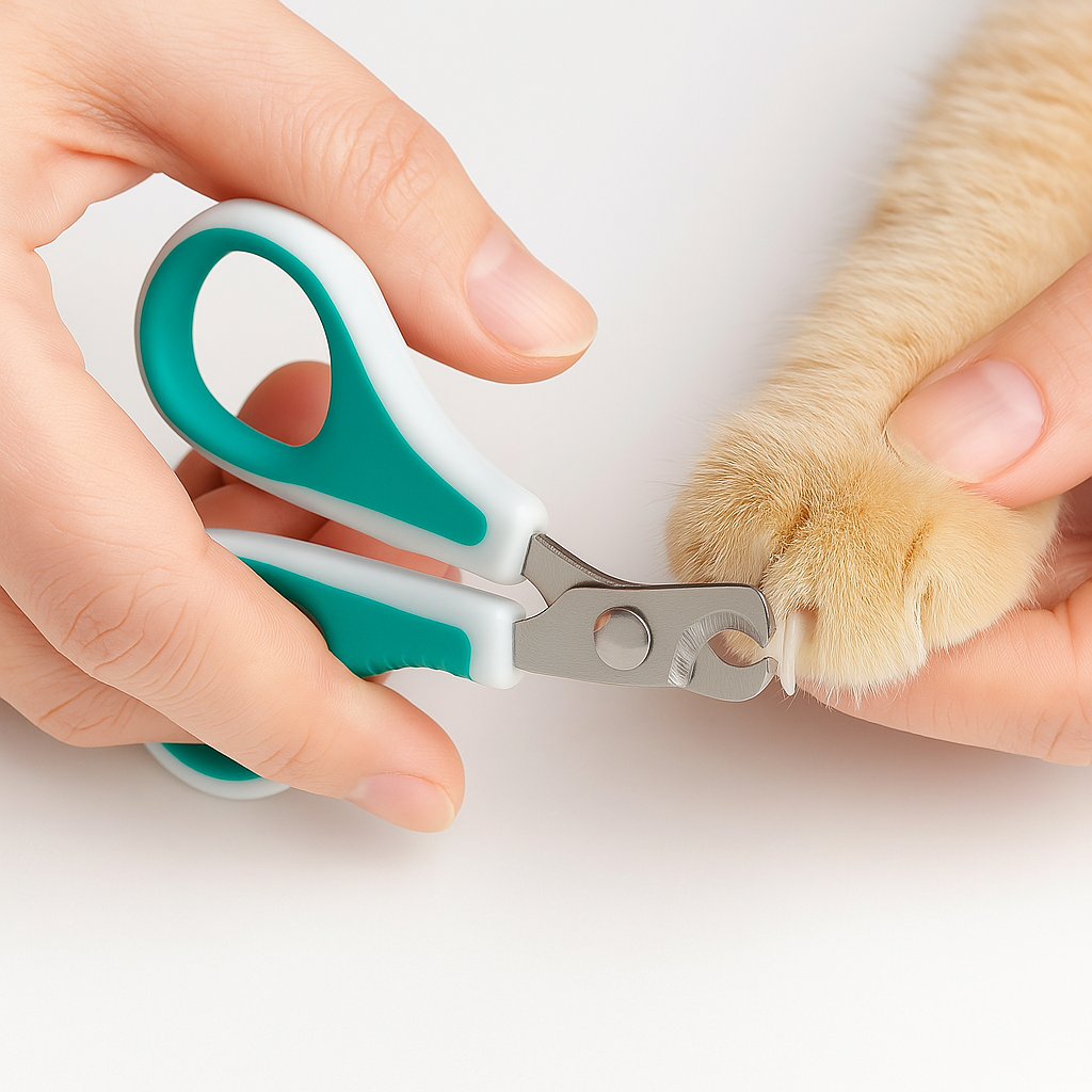 Gently hold your pet’s paw, isolate the nail, and trim just the tip using smooth, confident motion. Reward with a treat and repeat every few weeks!